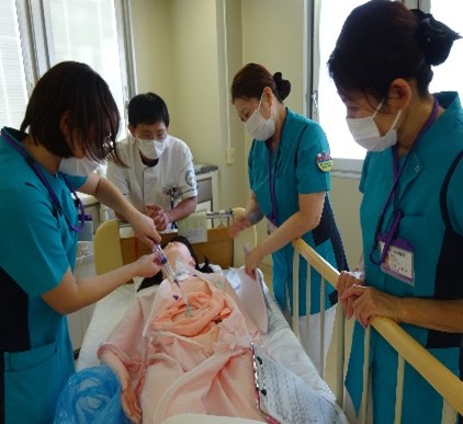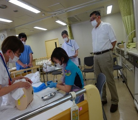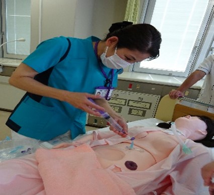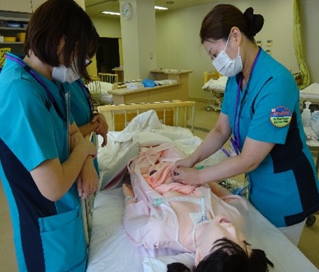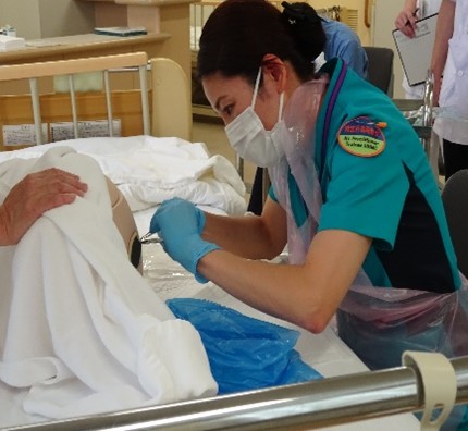 【シミュレーターで胃ろうカテーテル交換の実技練習】